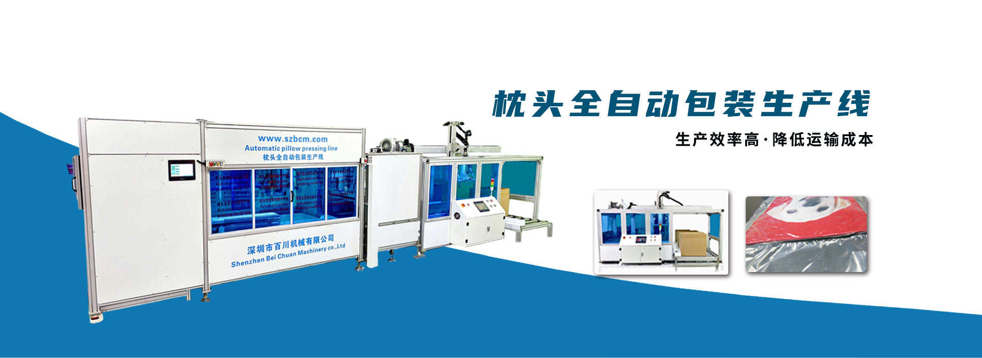 全/半自動枕頭包裝系列 本系列全自動/半自動 自動壓縮、自動打卷、自動封口,節約枕頭運輸體積,減少人工。觸摸屏人機對話。